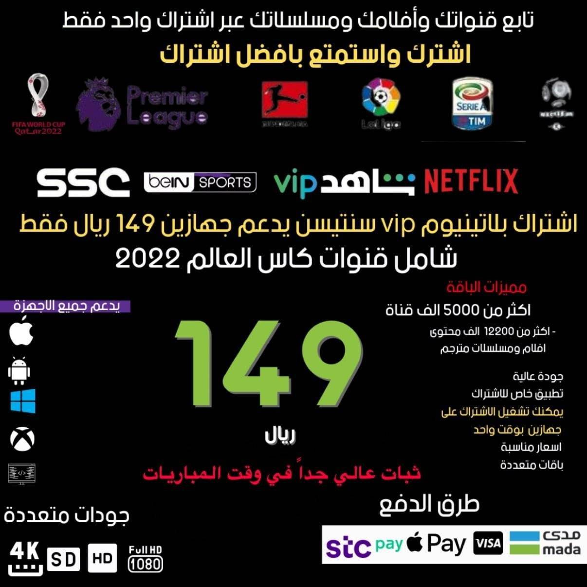 كما يعتبر اشتراك سمارتر smarter الافضل وذلك لتوفير الكثير من المال كما انه لدينا اشتراك فالكون falcon iptv و اشتراك سمارتر smarter iptv ايضاً هو يجمع بين الكثير من الباقات والاشتراكات والمحتويات فالبعض يريد المباريات والبعض الاخر مسلسلات وغيره افلام بينما بفضل وجود اشتراكات iptv فهي توفر لنا كل مانريد متابعته على سبيل المثال اقل سيرفر ستجد فيه اكثر من 5 الف قناه لا سيما وهو يحتوي على باقه واسعه من المسلسلات والافلام بالإضافة إلى باقات من netflix وشاهد و osn و ssc و hbo والكثييير اشتراك سمارترز iptv VIP الرسمي سنه جهاز واحد smarters